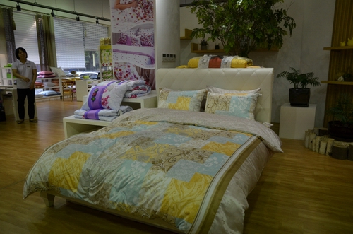 Welcron 公司 从COEX 展馆向西一个多小时的车程即可抵达位于KICOX 产业集聚地的Welcron 公司,该公司是一家从事超细纤维材料生产研发的企业,主要产品有卫生材料、家纺产品、以及半导体、防弹衣等产业用纺织品。公司负责人李先生介绍说,其超细纤维制品世界市场占有率排名第一。公司年销售收入近700 亿韩元,10% 的资金用于研发。图为用超细纤维开发的具有抗螨虫的家纺产品,亲肤感极佳,这样一床被罩售价高达24 万韩元,公司目前60% 的收入来自家纺产品的销售。