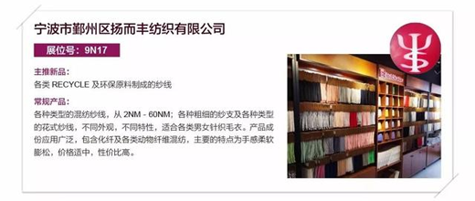 9号馆【精品纱线区】将汇聚多家时尚、绿色纤维、纱线品牌,欢迎莅临!本期推“潮流花式纱”,敬请关注...点“阅读原文”进行观众预登记