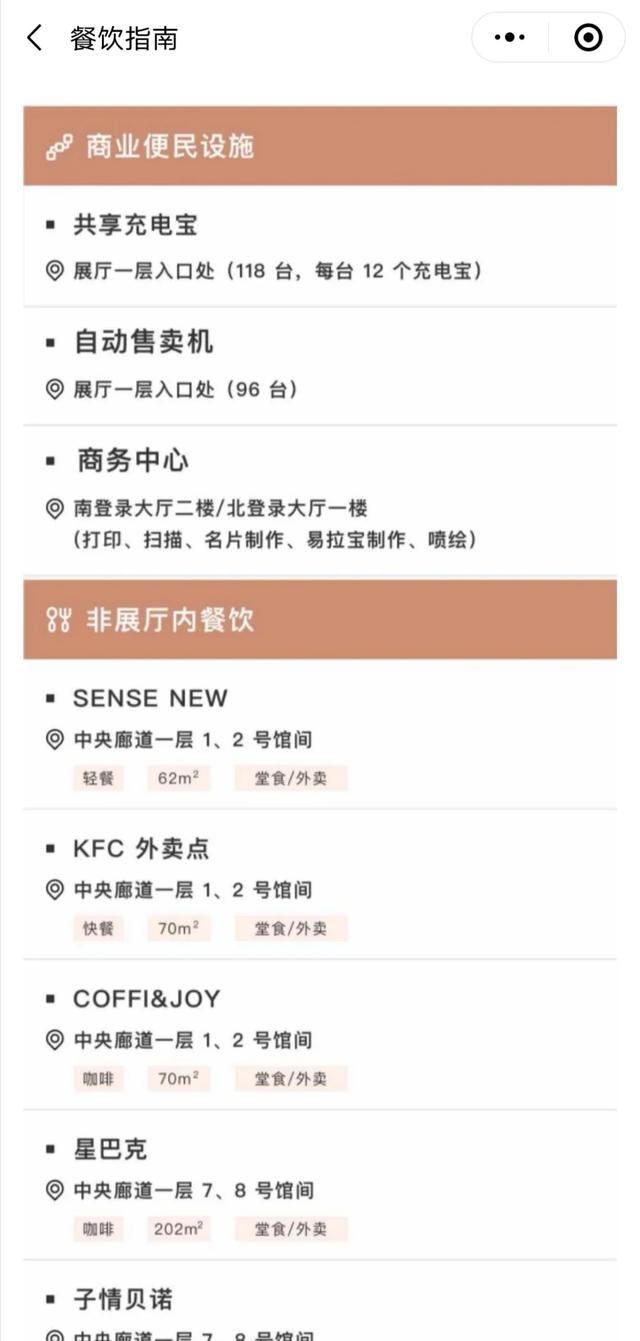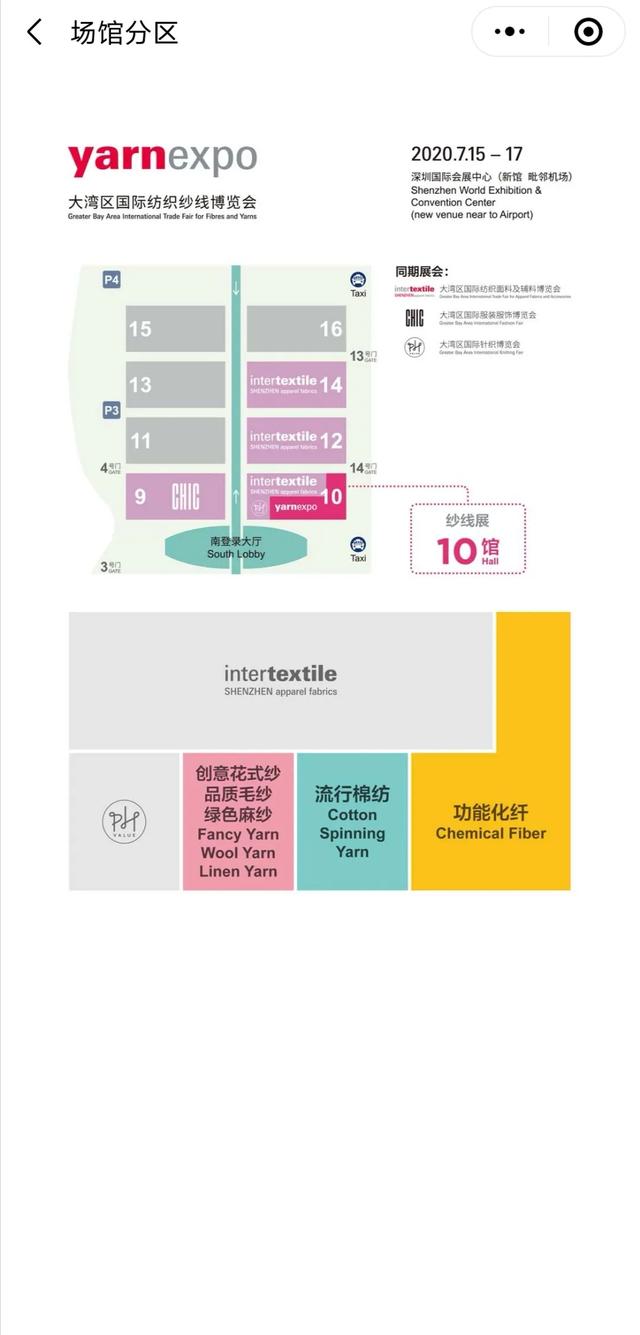 六、精致服务体验,省时省力省心 在纱线展云展小程序上,不仅能够通过“展厅”看到丰富详细的展商资料与展品信息,而且新增了“展馆信息”“场馆分区”、“交通指南”、“餐饮指南”板块。最详尽的参展攻略,为参展商节约大量参展时间,合理安排自己的观展计划。