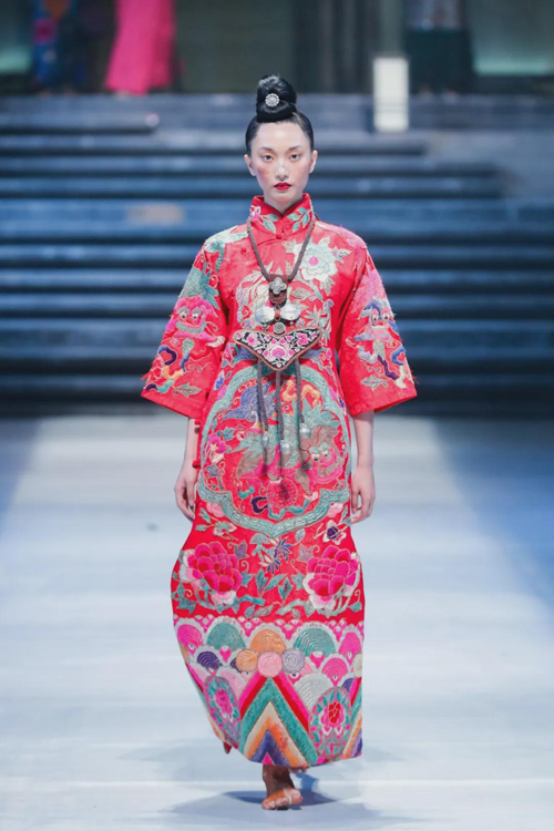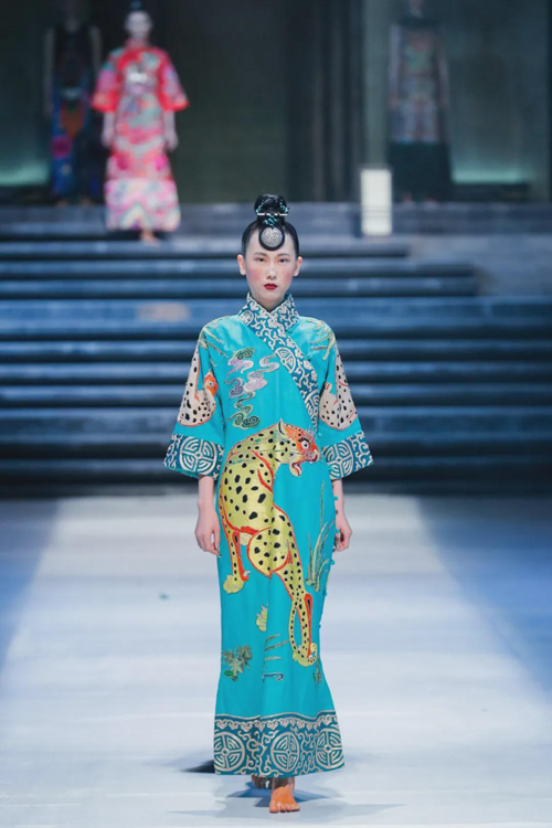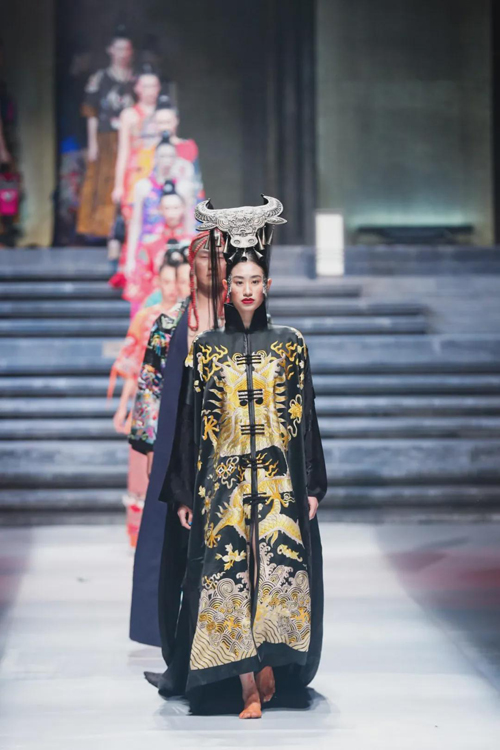 本次大秀,在T台上融合了光影、音乐和舞蹈,呈现了一场如梦似幻的艺术行为,带来一场流光溢彩的滨江视觉大秀,采用了突破性视角,挖掘民族风情背后的国潮?化,用服装作为载体进行多元化呈现。是将天马行空般的想象力,与现代时装概念相结合。通过传统且经典的刺绣、扎染、 重工等极具代表性的多元工艺手法,保持原有的多元艺术设计理念,从工艺及风格上接轨国际潮流元素,演绎中国精神、传递中国态度、丰富价值表达。