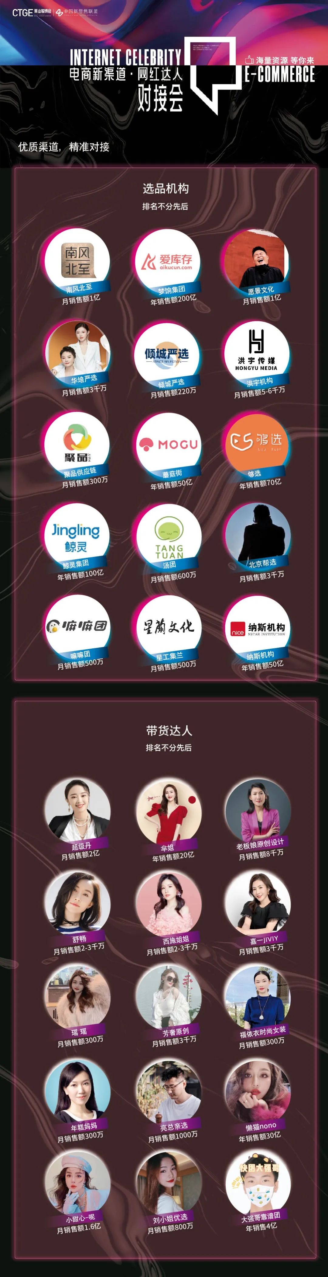 随着直播电商的高速发展,纺织服装行业也在加速拥抱直播带货带来的新业态、新渠道!本场对接会邀请MCN机构、网红达人、团长等新渠道买家,助力新渠道买家及品牌实现高效对接。