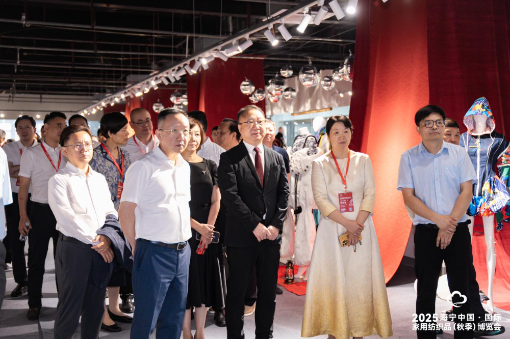 中国纺织工业联合会副会长阎岩,中国纺联专家咨询委员会委员曹学军,中国纺联新闻办主任、《纺织服装周刊》杂志社社长徐峰,中国纺织经济研究中心主任华珊,中国家纺协会会长朱晓红,中纺企协副会长、中国纺联产业集群工作委员会副主任兼秘书长张海燕,中国家纺协会副会长王易、吴永茜,中国针织工业协会副会长张希成,中国服装协会副会长李昕,中国纺织建设规划研究会会长冯德虎;海宁市政协主席周红霞,海宁市人大常委会副主席曹毅,许村镇党委书记许新峰,海宁中国皮革城股份有限公司董事长黄征,海宁市家用纺织品协会会长曹咬强,海宁中国家纺城股份有限公司董事长殷晓红等出席开幕典礼。