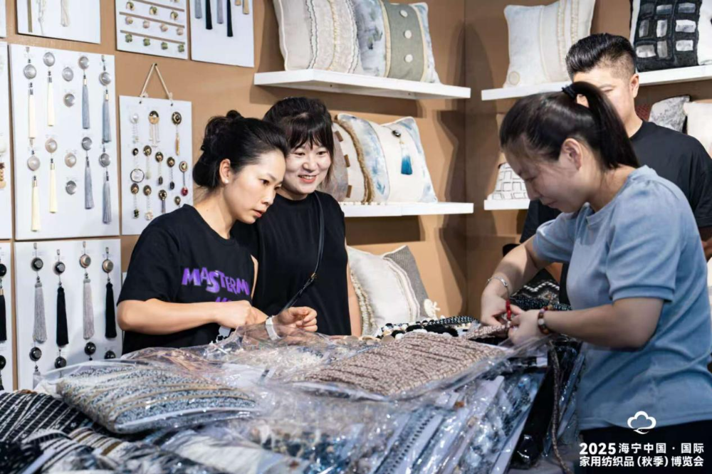 ![]() 8月17日,为期三天的2025海宁中国·国际家用纺织品(秋季)博览会(即第33届海宁家博会)在许村·海宁中国家纺城拉开帷幕。本届家博会以“智造·让家更美好”为主题,超25万平方米的展览面积,吸引2500余家源头企业、品牌商参展,为观众带来了一场链动全球的家纺盛会。展品涵盖家纺装饰布、窗帘布、沙发布、窗纱、墙布墙咔、智能遮阳、窗饰辅料、服饰面料、纺织文创、纺织机械、床上用品、整体家居软装等,带来一站式、全链条家纺家居解决方案。