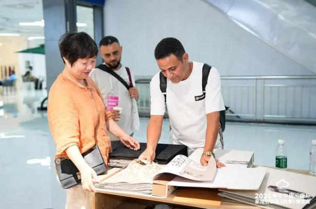 “我已经在对接会上成功选到了2家品质企业,这些企业在外贸方面的丰富经验,能够很好的解决产品包装、品质、运输、退税、报关等各种细节问题,对我们出口埃及有非常好的帮助。”埃及买家Hisham在接受采访时,兴奋的从随身的包里掏出了刚刚选定的合作供应商提供的沙发布样卡。据悉,此次他的目标采购量是28000米沙发布,目前“KPI”还未完成,他还要继续去其他展区“淘宝”、比货、问价。