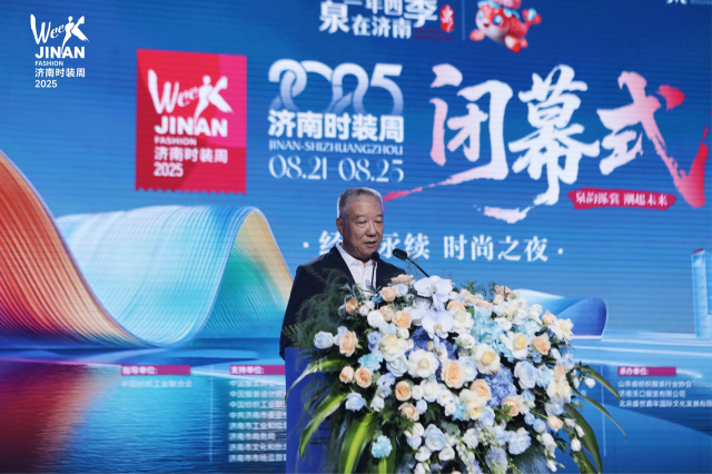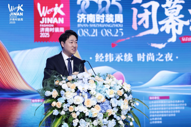 ![]() 闭幕式上,济南市华宇集团董事长、泺口服装城总经理刘学谦致辞表示,2025济南时装周实现多项重要突破,成功与韩国东大门市场、全国服装流通联盟、多所高校及十大专业市场达成战略合作。未来,泺口服装城将围绕“双升级、双转型”战略,推动泉水文化、非遗元素与时尚深度融合,打造全国原创品牌孵化地及潮流策源地。