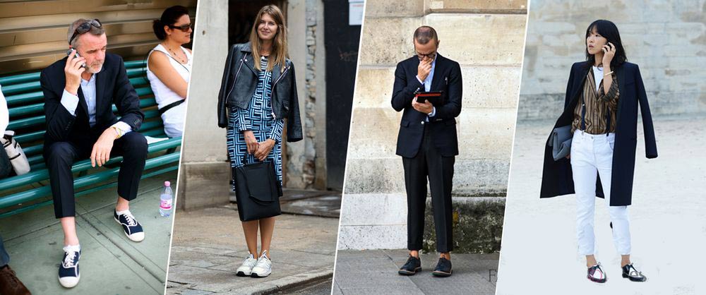 袜搭皮鞋本是正路搭配,只是当袜子改变长度,甚至变成丝袜,就打破原有常规。加上现在的袜子材质款式多样,印花、钉珠、镶缝等的都有,可以随时根据不同的服装造型变换,难道不比死板正规来得有趣么?!