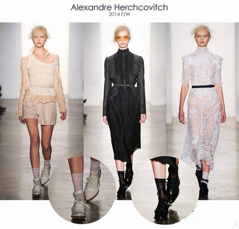 ![]() 四大时装周一向是时尚风向标,刚刚结束的2014秋冬纽约、伦敦时装周上,居然“返土”起来!大批丝袜+凉鞋的搭配,那些你曾经嘲笑的老土如今变成时尚、成为趋势!那么你还跟不跟风?!