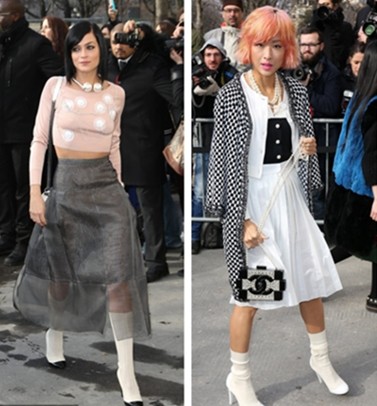 当然,也不是每个人都可以接受“E神嫂”的风格,甚至于就算是街拍潮人、时尚杂志纷纷在力推这样的装扮之时,还是有很多人会在时髦的门前犹豫不决。鞋与袜应该怎么搭配,穿怎样长度的裙子更适合,以及会不会有些太做作……都成为了有待解决的问题。