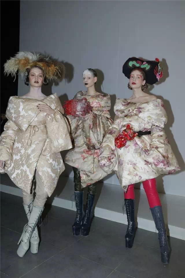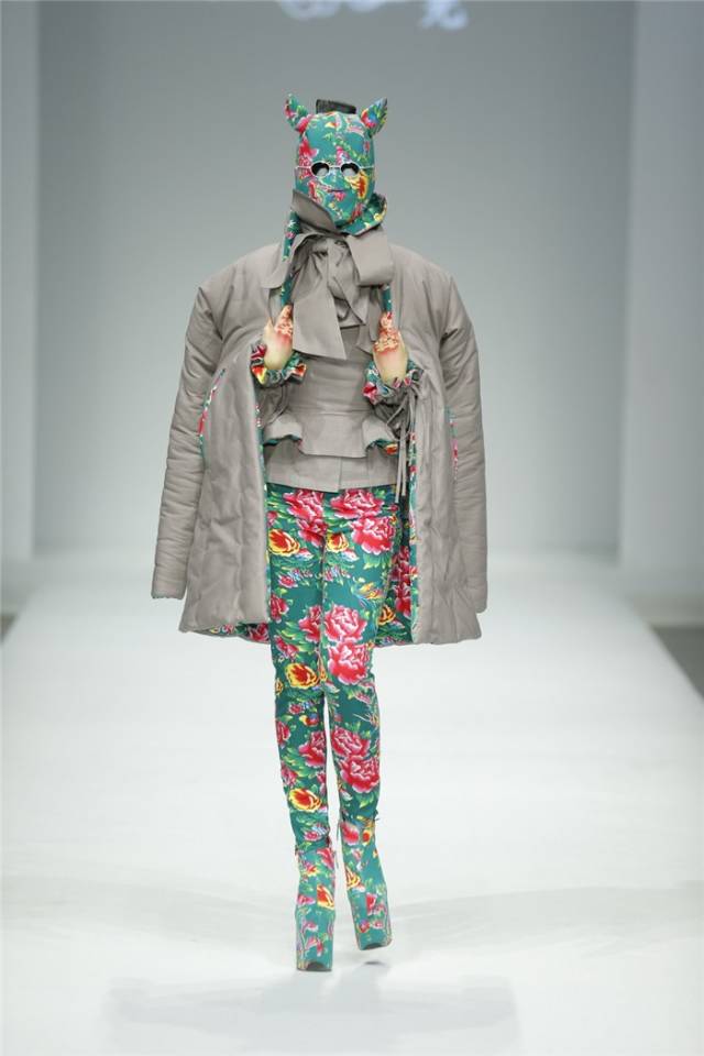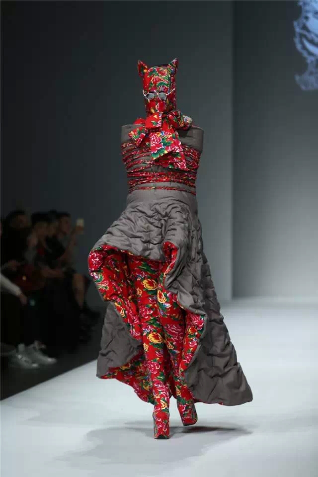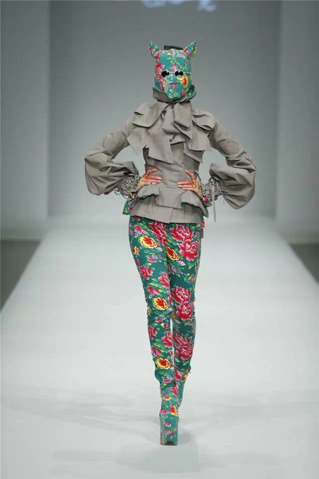 如果揭开那个诡异的面具,小TA以为,这些衣服和很多设计大赛的学生作品并无差异,造型夸张,元素独特,仅此而已。以现在很多设计大赛的水平而言,或许还应该算是精良作品,至少比例虽然夸张,但并不让观者难受;色彩也还算协调,放在某宝或许也能成为跑量款。可是如果这样,胡社光还能成为“话题王”么? 在服装上,做不到跳出,就在形式上寻求突破,想想胡社光也是蛮拼的。其实,他选择的元素,无论是窑变,还是民俗化的印花,都还是有亮点的,小胡,其实你好好的,只用你的造型特长和并不扭曲的审美,做一场纯粹的秀,也能成为正面的“话题王”。 加油哦…… |
