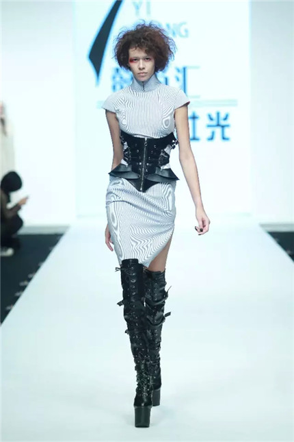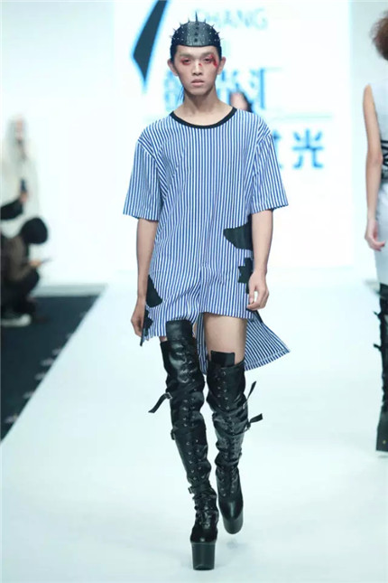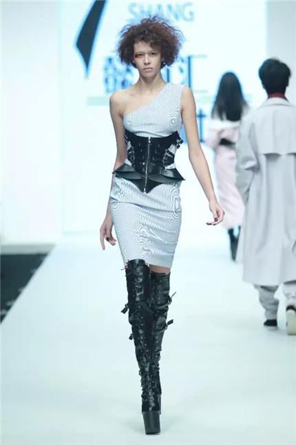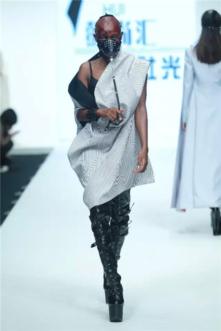 本刊记者—黄天玉/文 张彦山/摄 “秀不惊人死不休”,这句话用来形容胡社光的秀真是再合适不过了。10月26日下午,又一场“胡秀”在751举办,慕名而来的人潮将场地挤得水泄不通,开秀前,人们都在琢磨:这次胡社光又将“雷”出什么花样来? 与让无数模特“竞摔倒”的恨天高、一次次刷新人们审美观的东北大棉袄不同,这场以“戒”为主题的发布会,雷人程度算得上中规中矩,尽管色调、音乐依旧另类,但营造出这种怪诞的、荒谬的,令人忍不住屏住呼吸的氛围正是胡社光最擅长的。 一个“戒”字,含义很多,细细想来,清醒寡欲、不为诱惑所动的感受居多。借此为主题,胡社光带来了SheguangHu的最新成衣系列,并抛出了一个问题:在这个肉欲纵横、灯红酒绿的年代,我们不禁要反思,在人们的内心深处,我们究竟需要的是什么? 在秀场上,胡社光给出的答案时刻挑拨着看客们的神经。虽然设计师想与我们进行一场关于欲望的讨论,对这个光怪陆离的社会开始一场另类的反思,但如无跟胜有跟的登天靴、古罗马角斗士面罩、铠甲与蕾丝的戏剧性邂逅、修身长尾与高耸灯笼袖的夸张对比……人们是否能从这些带着“病态”的画面中读出对情感、欲望的隐忍与克制?恐怕还是一件仁者见仁智者见智的事儿。 记得在东北大棉袄火爆网络的时候,胡社光曾经说过,设计师的生存离不开噱头。是的,这场秀依旧不乏“胡式”专属的视觉冲击,也有不少名人明星助阵,甚至亲自上场走秀,但设计就是如此,没有标准答案的开放式作文才能成就像胡社光这样从来不缺话题的辩手,这也是很多人“戒”不掉的另类不同。