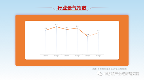 2022年以来,地缘政治危机减缓全球经济复苏进程,国内疫情多点散发、物流运输受限、原料价格上涨等因素增加行业运行发展压力。近期,中国纺联组织了纺织企业景气调查工作。据测算,2022年一季度我国纺织行业综合景气指数落到趋冷区间,仅为42.6,较上年四季度回落19.7个点。
