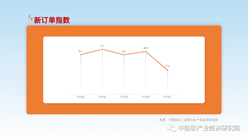受需求不足影响,一季度行业新订单指数回落较快。据测算,2022年一季度,我国纺织行业新订单指数为37.8,较上年四季度指数下降29.0个点,回落非常明显。