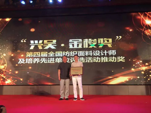 “兴吴·金梭奖”第四届全国十佳纺织面料设计师及培养先进单位颁奖。江阴兴吴呢绒科技有限公司在本届“全国十佳纺织面料设计师及培养先进单位评选”工作中做出了突出贡献,为此特授予评选活动推动奖。中国纺织工业联合会副会长孙瑞哲,为江阴兴吴呢绒科技有限公司董事长吴栋标颁奖。 下午,峰会还平行举办了“产品开发论坛”和“采购需求论坛”,并组织考察了石狮国际轻纺城。 |