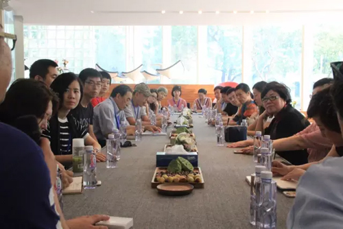 随后,日播集团业务副总裁、播品牌总经理郑征,日播时尚集团股东&TAORAY WANG总经理王陶等相关负责人与成员们进行了座谈。 郑征从发展历程到设计再造,再到人力组合,与同行分享品牌的当下和未来,而王陶女士则从自己身为设计师这样一种身份,与成员分享了她对服装和品牌的理解。她认为,中国的服饰文化应该有一个新的开始,因为中国元素早已不再是“龙凤”符号所能阐述完整的,中国文化中的隐忍和内敛等也都是中国元素。