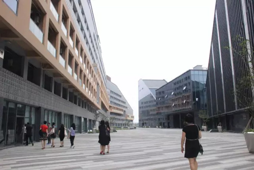 上午,大巴停靠在了上海松江区中山街道茸阳路的98号,绿草茵茵、小河流水,一下车成员们就感受到了日播时尚集团股份有限公司浓厚的企业文化。