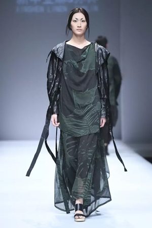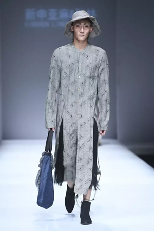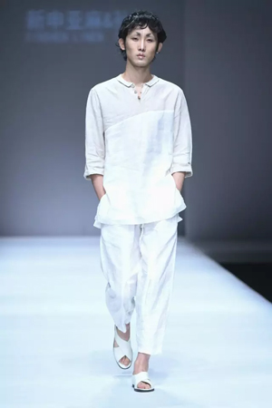 怀着“精神的自由、民俗的融合”设计理念,孙林将亚麻、中国文化与现代时尚由远拉近,最终相互融合并升华出时尚界的亮眼色彩。 心灵贵族——创新、责任与担当 什么是贵族精神?它不与平民精神对立,不意味着养尊处优的生活。而是以荣誉、责任、勇气、担当、自律等一系列价值为核心的先锋精神。 发布秀后半段一系列印花、大廓形服装的加入,赋予整场秀更多的年轻态。正如孙林所说,在简约风格之上,选择了立领等年轻人更喜欢的元素加入其中,希望更多的年轻人群喜欢亚麻。
