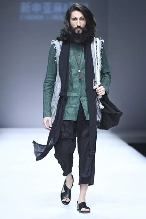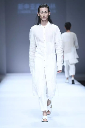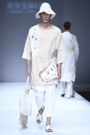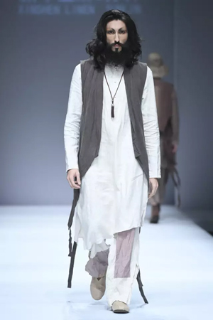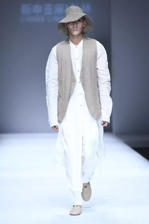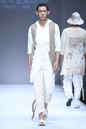 当心灵不受拘束,当身体也在心灵的放达中通往自由的故土,每一个人,何尝不是人生的贵族? 心灵贵族——平静淡泊与坚守 孙林说,这一系列的面料没有采用太多的工艺处理,尽可能保持了简约、本真的亚麻风范。 而现场来看,飘逸洒脱的裁剪线条,天然质朴的亚麻原色,确实更好地勾勒出流浪贵族平静淡泊的脱俗气质。