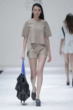秀演开始,观者的直观感受就是形态变化,突破以往人们对手包、肩包等的固有形状印象,将弧线与棱角通过多样几何思维结合在一起的包,让人眼界大开。