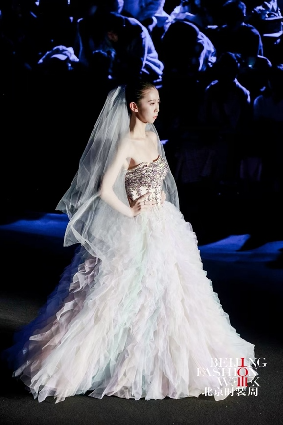 ![]() 本季发布会以 “花田蕴生·绽放京彩”为主题,设计以“花田意象”为创作原点,将自然花田的生长与盛放转化为婚纱礼服的艺术语言,通过结构、色彩与材质的层层递进,构建一段从梦境萌芽到誓约永恒的情感叙事。在传统婚纱设计语言的基础上,系列作品融入立体装饰、结构塑形与现代工艺,使浪漫诗意与当代审美交织共生,呈现中国婚纱设计的新生力量。作品共呈现花影初梦、花海流光、炽焰花宴、花田誓约四大系列,以花田在不同光影时刻的变化隐喻爱情的不同阶段,在色彩与廓形的演进中描绘一段由初见、悸动到炽热、永恒的情感旅程。