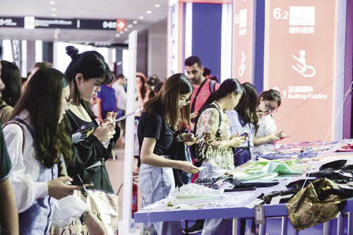 环保、再生是本届展会的突出亮点 在中国面料流行趋势展区,“可持续”是其中一大主题,500多款生物基面料、原液着色面料、先进染整技术处理的面料吸引了不少来宾驻足。金辰纺织则推出了功能性速干、凉感、抗紫外、防护面料,同样突出环保主题。公司还推出了一款采用调温相变粘胶生产的温控面料,利用特殊聚合物状态转换时吸热散热作用,延缓衣服内温度变化。 泉州海天材料科技以运动功能性面料著称,并且长期专注绿色循环再生纤维的开发使用,他们今年主推ECOrona生态环保主题,通过再生纤维、原液着色纤维、生物基可降解纤维以及色纺纱面料的开发利用,积极响应国际品牌客户提出的环保要求趋势,受到了国际品牌客户的认可和欢迎。他们生产的生态环保新型保暖高蓬松绒类、高密针距单双面类、新型功能类针织面料深受客户喜爱。 东丽公司此次还提出综合环保概念,除了瓶片、废旧塑料等环保产品,提倡从源头开始环保,推出了从甘蔗中提取纤维的“绿色创新”项目。 达利丝绸今年销售收入保持了两位数增长,利润增长高于销售增长。公司董事长林平表示,这主要得益于产品原料有所改变,降低了成本,同时将AI技术融入产品设计,受到海外客户青睐。 万事利的双面对位精准印花技术全球领先,他们的产品受到国际奢侈品牌路易威登的青睐。兰州三毛、兴吴呢绒、烨天羊绒、南山智尚、三德纺织、康平纳、江苏阳光等毛纺企业逐一展示了各自的创新成果。 此次“新技术创新空间”占地200平方米,以“纺织科技新领域、新视野”为主题,展示了纺织高性能复合功能材料、柔性结构材料制备技术的新进展,以及近年来我国纺织产业在 “卫生灾害响应”、“军队警察配套”及“特种安全防护”三个方面的新应用。