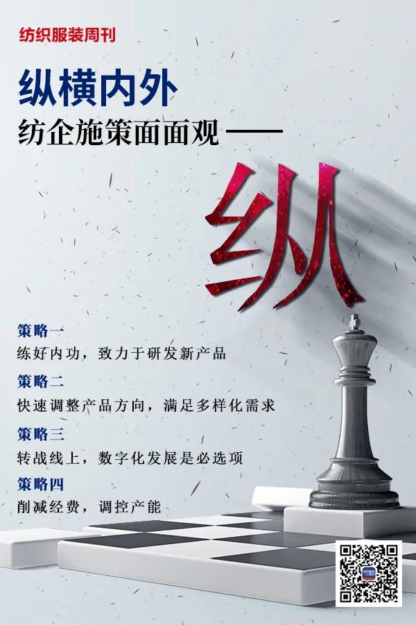 本刊记者- 郭春花 开栏语 新冠肺炎疫情肆虐全球,国际贸易活动受限,与大多数行业一样,我国纺织服装行业面临着严峻的生产贸易形势。面对困境,勤劳自信的中国纺织服装企业表现出极强的活力和韧性,纷纷创新经营方式,多措并举、多管齐下,通过“纵、横、内、外”等多种渠道打出一系列强信心、稳发展的“组合拳”,在这个不寻常的时间里,书写了一份崭新的答卷。 为此,《纺织服装周刊》特开设“纵横内外·纺企施策面面观”系列报道,从“纵、横、内、外”四个角度邀请专家深度分析当前形势,采访优势企业的创新做法,从而引导行业健康向上发展。 2020年对于每个人来说都是特殊的, 策 略 一 练好内功,致力于研发新产品 世界著名实业家、哲学家稻盛和夫曾经在其《企业摆脱经济危机的五大方略》中提到,一旦经济低迷,企业势必陷入窘境,这个时期一定要练好内功,努力研发新产品和新商品,这一点在这个特殊时期显得更为重要。因为原有的订单量大幅减少,因此如果还依靠既有产品的话,是无法打开销路的。另一方面,即便是在经济不景气的大环境下,也仍然肯定有未被发掘的市场需求存在。至于这潜在的需求是什么,就需要企业的高层通过“亲自公关”“亲自推销”的方式去探求。 德州恒丰集团理事长孙传芳就认为,疫情过后,人们预计会有一波“消费”释放居家隔离的压力,特别是受疫情影响,未来人们会更关注健康,大健康产业会迎来利好,这对纺织服装企业抗菌抑菌产品的开发生产是一个很好的机遇。而恒丰集团有很多抗菌抑菌产品,如铜纤维纱线系列、竹纤维纱线系列、植物染纱线系列、负离子系列、锌纤维系列、银离子系列,会受到更多的重视,同时也会促进恒丰在大健康纱线系列的进一步研发。“越是困难时期,越是企业修炼内功的时期,这对企业自身管理的规范提升,创新创造,质量管控是一个很好的契机。”孙传芳说。 近段时间以来,瑞沃尔制衣有限公司也紧跟国际流行趋势,瞄准2022年北京冬奥会和人们日益高涨的户外运动需求,加大高端品牌服装研发力度,研发设计出滑雪服、防晒装、冲锋衣等产品,并顺利进入国内外市场。据董事长钟玉贵介绍,公司生产的菲尼克斯品牌滑雪服,分别被挪威和日本国家滑雪队选定为专用队服。 策 略 二 快速调整产品方向,满足多样化需求 突如其来的疫情,瞬间打乱了企业的工作计划和发展节奏,是坚持扛下去?还是调整产品开发方向,满足市场需求?对此,北京大学国家发展研究院BiMBA商学院院长、北京大学王宽诚讲席教授陈春花也认为,疫情当下,企业应以当期经营为主,并且要平衡当期经营和长期战略的关系。以当期经营为主,至少要做好两件事。第一,用不亚于任何人的努力改造当前业务。如果你不能够用极大的努力去改造当期的业务,在当前一个完全不确定的外部环境当中,就很难找到业务的业绩。第二,当期业绩的取得取决于两个关键——组织效率与顾客语言。如果你能够有非常高的效率,比任何人调整的速度都快,执行的效率都高,执行的品质都好,而且在变化波动当中,顾客会有很多新的问题、新的需求,你能够解决顾客的问题,并让顾客理解,你能够获得当期的业绩。 主营宠物用品、家居服睡衣套及衬衫面料三大类产品出口的无锡市金茂对外贸易有限公司就在疫情期间根据市场需求对产品做了快速调整。由于中外的观念、生活方式等不同的影响,宠物用品作为生活必需品,销售量反增不减,同比增长5%-6%。家居服睡衣套的生产在疫情初期被紧急叫停,现在正处于部分恢复生产、延后出运的情况,客户取消订单的比率不到10%。而衬衫面料因为需求不足,现在是全部暂停状态。董事长杨南介绍到,“美国市场在公司业务中占比达到90%,现阶段我们主要是保持与客户的沟通,维护客户关系,在做好防疫工作的前提下,也是为今后更好的合作打下基础,做好铺垫。”同时,无锡金茂在疫情期间一直在做产品开发设计工作。“因为疫情总会过去,服装作为生活日常用品,市场需求是一直存在的,要为后续的复工复产做好准备。同时进行国内市场的开发、国内品牌的结合等。” 疫情发生初期,女装品牌企业山东舒朗服装服饰股份有限公司董事长吴健民在积极投入抗疫的同时,看到市场对医卫防护用品的巨大需求后,迅速果断做出了一个大胆的决定:开辟新版块,成立烟台舒朗医疗科技有限公司,专业研发、生产、销售卫生防护用品,不仅为国家做出了贡献,也为公司开辟了一片蓝海市场。如今,舒朗时装、医疗、军工三大板块正在稳步发展。“未来烟台舒朗医疗科技有限公司将积极开展手术衣、洁净服等各类医疗产品的开发与生产,并进一步开拓国际市场,创造让中国人民骄傲和全球人民喜欢的医疗产品。”吴健民说。 策 略 三 转战线上、数字化发展是必选项 17年前“非典”疫情的爆发,刺激了电子商务、快递物流等行业的快速发展。此次新冠疫情,也必然对未来商业趋势和商业格局带来影响。其中,一个重要趋势就是产品服务及商业模式的线上化和智能化。企业的数字化转型和升级,是整个经济发展的大势所趋,而疫情则凸显了这一问题的重要性,加速了这一进程。 未名众创(北京)管理咨询有限公司创始人兼 CEO韩树杰提出,对企业来说,经此一“疫”,应高度重视商业模式、业务形态的数字化转型,提升产品与服