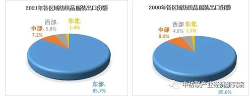 虽然中西部地区纺织品服装出口占比较小,但全年有三省市增速超过100%。其中,四川、宁夏、青海2021年纺织品服装出口增长分别达到110.4%、386.0%和148.2%。 |