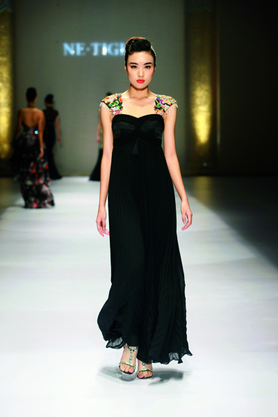 本刊记者-黄天玉 李英 日前,NE·TIGER“华美之囍”高级定制婚礼服系列展览于北京开幕。一件件华美的婚礼服、敬酒服、赞礼服、恩泽服、贺喜服折射出古与今、中与西文明的深邃璀璨之光,更展现了来自于华夏璀璨文明的馈赠。在工艺上,皇家千年织造绝艺缂丝、云锦、盘金绣、刺绣配合西方修身的时尚立体剪裁,做到了以中国元素的经典符号衍变出极具时尚感的国际语言,在东西方文明的灿烂交融中演绎婚礼服的前世与今生。 返本开新,明礼弘德,NE·TIGER 品牌创始人、艺术总监张志峰从没有间断对中国传统老工艺的探寻与追逐。据了解,NE·TIGER拥有专门的团队在全国乃至世界定期采风,目前已在江苏、四川、云南、日本、印度等地挖掘出云锦、缂丝、四大名绣、羌绣等工艺,NE·TIGER 还会拨出专项资金用于修复和传承,并研究、运用于华服之上。 张志峰与“千岁绣娘”的一张合影令人印象深刻,张志峰和他的团队在苏州寻访了20 多位老艺人,这些老人自幼学习刺绣,最长者已有95 岁高龄,岁数加起来有1572 岁。这些人有的连字都不会写,但她们的刺绣灵气逼人,她们有的穿针都不用眼睛看,拿手一捻就穿好了。张志峰说,“由这些老工艺人来参与完成我们的华服,本身就是一种历史的定格。” 事实上,NE·TIGER 在开创华服之初,便不惜耗费巨大的人力、物力深入民间,发掘出了被誉为“寸锦寸金”的云锦,使得这项有1580 年历史的国宝级艺术不只停留在故宫博物院的橱窗里。 除了发掘,NE·TIGER 要做的还有改良。“我们在云锦的基础上添加了施华洛世奇的水晶,因为云锦本身是好看的,但图案不够艳丽,加上了这些水晶,就会更加有特色。”张志峰介绍说,“我们将这些传统工艺恢复的同时,用现代人喜欢的图案去改良和创新,才能迎合现代人的审美。其实对于这些工艺来说,现代人能够喜欢就是最好的保护,可以得到传承,比放在博物馆要更有意义。” 2006 年,张志峰以云锦为主要材质,配合四大名绣、施华洛世奇水晶等元素推出了一系列高级婚礼定制服,当时,NE·TIGER 以云锦制作的第一件高级定制女装“凤衣”更是拍出了166666 元的高价。