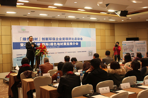 2014年12月16日,“绿色地材”创新环保企业奖项评比启动会暨2015广州(国际)绿色地材展览推介会在广州举行,广东省建筑材料行业协会会长吴一岳,广东省纺织协会副会长兼秘书长陈茜微,广东省石材行业协会会长黄泽鸿等出席并发表讲话。
