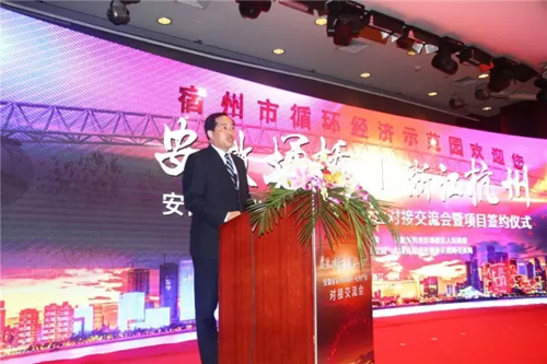 据了解,本次活动旨在宣传推介安徽省宿州市埇桥区的投资环境、产业导向、重大项目、投资优惠政策,加强与浙江省杭州市的经济联系,促进宿州市埇桥区(宿州市循环经济示范园)与杭州两地经贸合作,共同探索宿杭经济新型发展模式,共赢发展。 活动现场,埇桥区与杭州市安徽商会签订战略合作协议,与杭州颐高电子、杭州典若梵服饰、杭州方悦服饰、杭州瑞玺家具等项目正式签约。 紧抓产业转移机遇 布局首位产业 王启荣代表埇桥区委、区政府从埇桥区优越的地理位置、丰富的工业资源、厚重的历史文化、便捷的立体交通、完善的发展平台等方面向企业家们进行介绍,并对埇桥区的投资环境和各种投资政策进行解读。