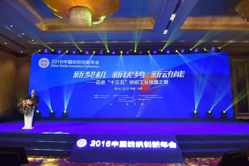 12月12日,由中国纺织工业联合会主办,工业和信息化部支持,中国纺织服装品牌园、立达(中国)纺织仪器有限公司、美国棉花公司、TESTEX瑞士纺织检定有限公司协办的“2016中国纺织创新年会”在北京召开。 中国纺织工业联合会原会长王天凯、会长孙瑞哲,工业和信息化部消费品工业司司长高延敏,中国纺织工业联合会副会长杨纪朝,党委副书记陈伟康,纪委书记王久新,中纺联副会长陈大鹏、李陵申、端小平、杨兆华,中国纺织工业联合会专家咨询委员会委员徐文英等领导,及各部门、各专业协会领导嘉宾出席本次会议。