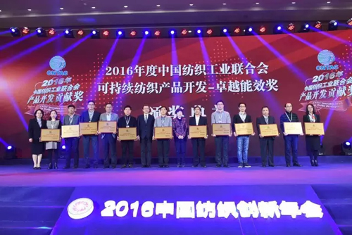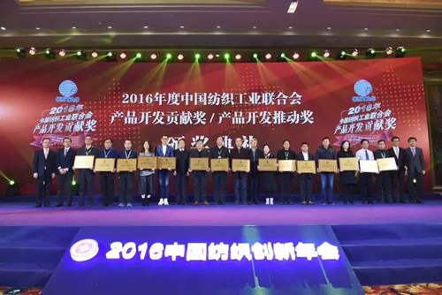 杨兆华做了《聚焦“十三五” 转型新家纺》主题演讲,他指出,家纺行业作为纺织三大终端产业之一,是我国传统民生产业,是科技与艺术融合的创意产业,是创造美好生活的时尚产业。在拉动内需、促进就业、建设生态文明等方面发挥着重要作用。家纺行业的在“十三五”期间设立了行业增长、科技创新、品牌发展等三方面目标。 以建设新家纺,创新驱动转型发展;倡导新生活,改善供给提升服务;构建新格局,优化配置协调发展;立足新高度,打造品牌促进升级;发展新经济,资源节约绿色发展为主要任务,助力“十三五”期间的纺织强国建设。 随后,大会举办了中国纺织面料流行趋势研究与发展联盟授牌仪式,颁发了2016年度中国纺织工业联合会可持续纺织产品开发-卓越能效奖、2016年度中国纺织工业联合会产品开发贡献奖/产品开发推动奖,以及中国纺织工业联合会“十二五”产品开发突出贡献奖。