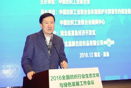 12月12日,主题为“共建生态文明、促进绿色发展”的2016年全国纺织行业生态明文与绿色发展工作会议在湖北嘉鱼县隆重召开。 中国纺织工业联合会党委书记兼秘书长高勇,副会长孙淮滨,中国生态文明研究与促进会副秘书长周桂玲,工信部节能与综合利用司张令普,中国长丝织造协会副会长廖梦虎、湖北省咸宁市人民政府副市长周勇,嘉鱼县委书记余珂,县长胡春雷,县委常委宣传部长许隆高,副县长李斌,嘉鱼经济开发区管委会主任华红、上海嘉麟杰纺织品股份有限公司董事总经理杨世滨,湖北嘉麟杰纺织品有限公司总经理胡震,以及来自各相关机构的领导专家,节能减排及资源综合利用示范企业代表、纺织企业代表、国家纺织产业节能减排技术支撑联盟代表和各大媒体记者共150余人出席了会议。会议由中纺联产业部副主任程晧主持。 2016年全国纺织行业生态明文与绿色发展工作会议主要包含两大内容,一是中国纺织生态文明万里行走进湖北嘉麟杰,二是2016年纺织行业绿色发展工作会议。
