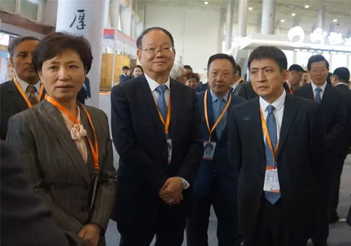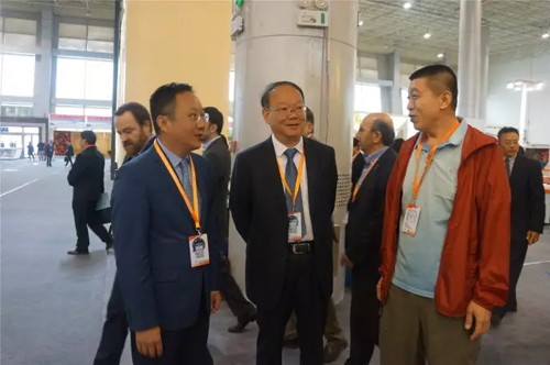 青海省省委常委王宇燕(左一),中国纺织工业联合会党委书记兼秘书长高勇(左二),中国纺织工业联合会副会长、中国家用纺织品行业协会会长杨兆华(左三),商务部党组成员、部长助理李成钢(右一)正在与展商交流。 本次展览会以“编织绿色地毯世界、铺架‘一带一路’通道”为主题,展会为期5天。青海省省委常委王宇燕、副省长田锦尘,商务部党组成员、部长助理李成钢,中国纺织工业联合会党委书记兼秘书长高勇,山东省副省长王书坚、新疆维吾尔族自治区政府副主席马敖·赛依提哈木扎、宁夏回族自治区政协副主席蔡国英,中国纺织工业联合会副会长、中国家用纺织品行业协会会长杨兆华,中国食品土畜进出口商会会长边振瑚等领导、嘉宾和国内外企业代表上千人汇集一堂,为扩大和深化藏毯的合作交流献计献策,为将藏毯展会打造成为丝绸之路上的知名品牌而努力。
