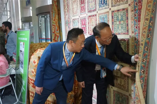 中国纺织工业联合会党委书记兼秘书长高勇(左二)中国纺织工业联合会副会长、中国家用纺织品行业协会会长杨兆华(左一)正在研究波斯地毯的编织方法。 展会上,来自巴基斯坦地毯制造与出口商协会前主席阿赫塔尔·纳吉尔·可汗对记者表示:“‘一带一路’倡议将整个世界连接起来,为国际合作开拓了新空间和新领域。青海成功举办了全球地毯界瞩目的国际性展会,深化了交流,增进了友谊,促进了发展,也把‘一带一路’沿线国家紧紧地联系在了一起。”他祝愿2017藏毯国际展览会圆满成功。 毋庸置疑,一条藏毯产业连接起世界藏毯文化,架起世界文化交融的桥梁。如今青海藏毯展会已连续举办14届。14年来,青海以自己独有的生态优势,沿着一条绿色发展之路,坚持不懈地打造出了一个独一无二的“世界藏毯之都”。 |