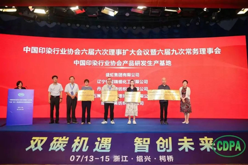 ![]() ![]() ![]() ![]() 大会还宣读了关于批准盛虹集团有限公司、辽宁恒星精细化工有限公司、丹东优耐特纺织品有限公司、石狮市万峰盛漂染织造有限公司、绍兴乾雍纺织有限公司继续作为中国印染行业协会产品研发生产基地的决定并颁发牌匾。