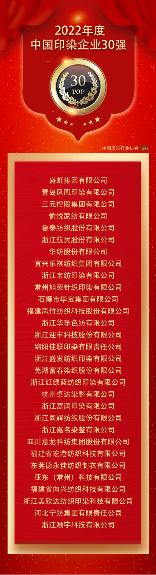 ![]() 为了进一步贯彻新发展理念,推动印染行业顺应新形势加快转型升级,树立典型,理事会上隆重发布了“2022年度中国印染企业30强”,并颁发了牌匾。