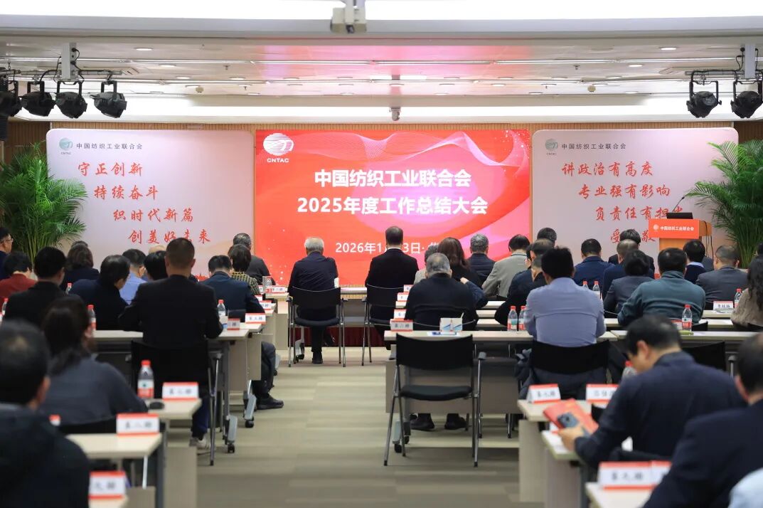 1月23日,中国纺织工业联合会2025年度工作总结大会在北京召开。会议对2025年纺织行业经济运行情况进行了深入分析,对2026年行业走势进行了预测和展望;相关行业协会介绍了各自领域2025年行业经济运行情况并对协会重点工作进行了总结,联合会相关部门对专业领域最新发展情况做了介绍。