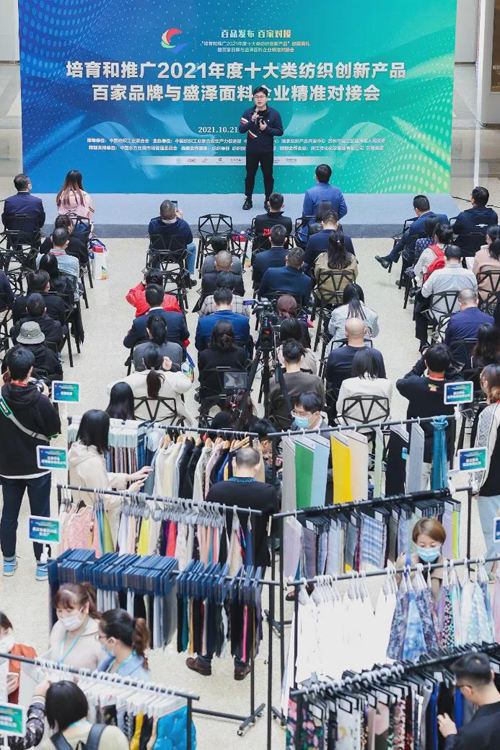 10月21日,在第十届江苏(盛泽)纺织品博览会盛大举行之际,“百品发布·百家对接”——“培育和推广2021年度十大类纺织创新产品”颁奖典礼暨百家品牌与盛泽面料企业精准对接会在江苏省苏州市吴江区盛泽镇举办。