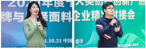 安踏儿童、探路者、三六一度、森马股份、伊芙丽、汇美集团、万事利、华佳丝绸、北京雪莲、华纺股份、孚日集团等百余家获选品牌与吴江福华、苏州兆海纺织、吴江盛伟紫荆花、苏州越世纺织、苏州泽布纺织等40家盛泽优质面料企业在活动现场进行了专场对接。
