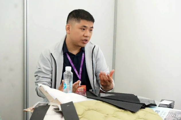 ![]() “我们品牌的定位是国内一二线品牌,对产品品质质量要求比较高。今天主要是想来找羽绒服、夹克面料,目前对接了十几家,好几个供应商的产品都特别适合我们,其中有工艺做出来光泽感非常出众的,有功能性方面比较匹配的,也有绿色环保方面表现突出的。”湖南东方时装有限公司开发部经理夏振宇说。主做城市户外、山野等户外场景的东方时装,对面料功能需求有别于一般的硬核户外,而是希望在舒适的前提下具备一定的功能性。此外,目前公司环保产品比例达到15%的东方时装,后续也将进一步提升该比例,“虽然现在环保产品价格偏高,但以后随着消费者环保意识觉醒,大家的需求也都会往环保方向转。这次看到的回收涤纶、生物基材料等环保材料我们都挺感兴趣的。整体来说,参加对接会收获还是让人满意的。”