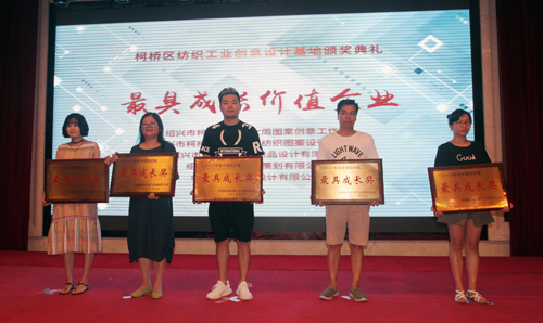为推动柯桥区传统产业转型升级,拉伸区内纺织产业链,激发柯桥纺织创意设计良好氛围,本次活动还对“2016年度柯桥区纺织工业创意设计基地优秀设计机构”进行授牌及表彰。其中浙江吉麻良丝新材料股份有限公司、绍兴原色数码科技有限公司、浙江瓦栏文化创意有限公司等在内的十家单位荣获“2016年度柯桥区纺织工业创意设计基地十佳创意机构奖”;柯桥大周图案创意工作室、绍兴原生空品纺织品设计有限公司等在内的五家单位荣获“2016年度柯桥区纺织工业创意设计基地最具成长奖”。获奖代表在发言中表示,奖牌是对其过去努力的肯定,接下来将再接再厉,为推动柯桥区纺织工业创意设计产业发展作出新的贡献。