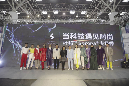 “当科技遇见时尚”主题秀引爆现场 “当科技遇见时尚”杜邦™Sorona®主题演讲及专场时装秀在展会主形象区惊艳亮相,不仅诠释了绿色环保纤维应用的无限可能,更演绎出环保功能加科技的全新时尚态度。活动吸引了不少展商和采购商的兴趣,现场聚集了数百位宾客,座无虚席。 杜邦™Sorona®大中国区市场部主任翁文瑾作题为《当科技遇见时尚——杜邦™Sorona®生物基纤维引领百变潮流》的演讲,为在座宾客详细介绍了Sorona®纤维的性能、特色及全球各大品牌应用的情况和市场发展前景。 随后,杜邦™Sorona®纤维与原创时装设计师合作的时装秀“当科技遇见时尚”精彩上演。通过模特走秀,动态呈现了近40套男女装,展示出杜邦™Sorona®纤维及面料在不同时装艺术中运用的更多可能性。“绿色环保纤维、应用无限可能”的新材料主题在此次活动中得到了最佳诠释。