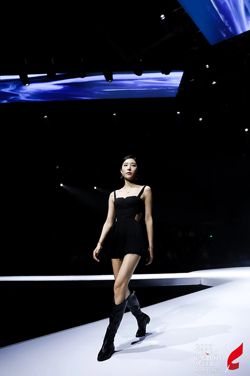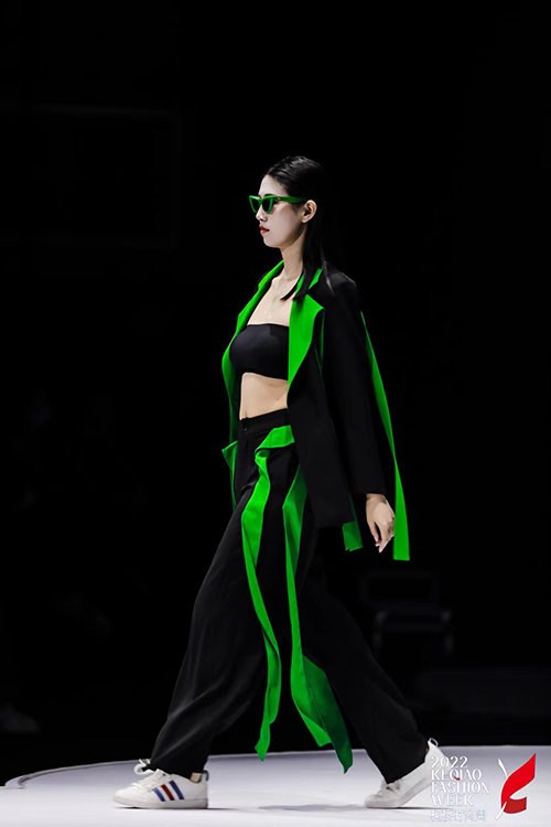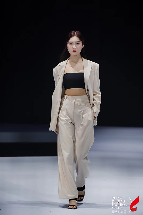 整个秀场分成3个系列,休闲系列、通勤系列、连衣裙系列向我们展示了不同场景、不同风格、不同身份的女性的自我时尚表达。