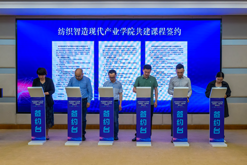 ![]() ![]() 会议现场,纺织智造现代产业学院与成员单位签订浙江省新工科教材共建协议以及产业学院共建课程协议,同时成立了由现代产业学院理事会成员单位发起的纺织智造现代产业学院纺织人才发展基金会,用于高水平的应用型纺织服装类专业人才培养,服务绍兴及其周边区域现代纺织产业发展。