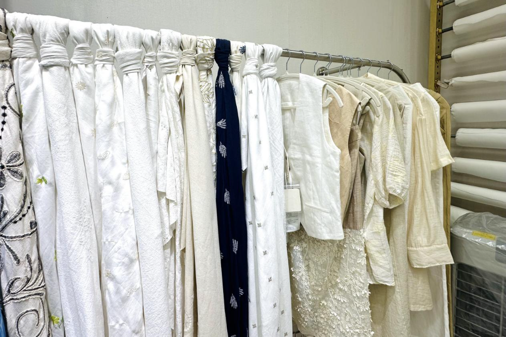 ![]() 针对这些需求,“宏运麻棉”依托混纺技术,推出了一系列创新产品。例如今年主打的莱赛尔亚麻与天丝亚麻系列,通过科学配比与工艺融合,既保留了亚麻的天然肌理与透气功能,又融入了莱赛尔与天丝的柔滑垂感,显著提升了穿着舒适度与服饰表现力。该类产品一经推出,迅速成为国内外品牌客户追捧的热门系列。