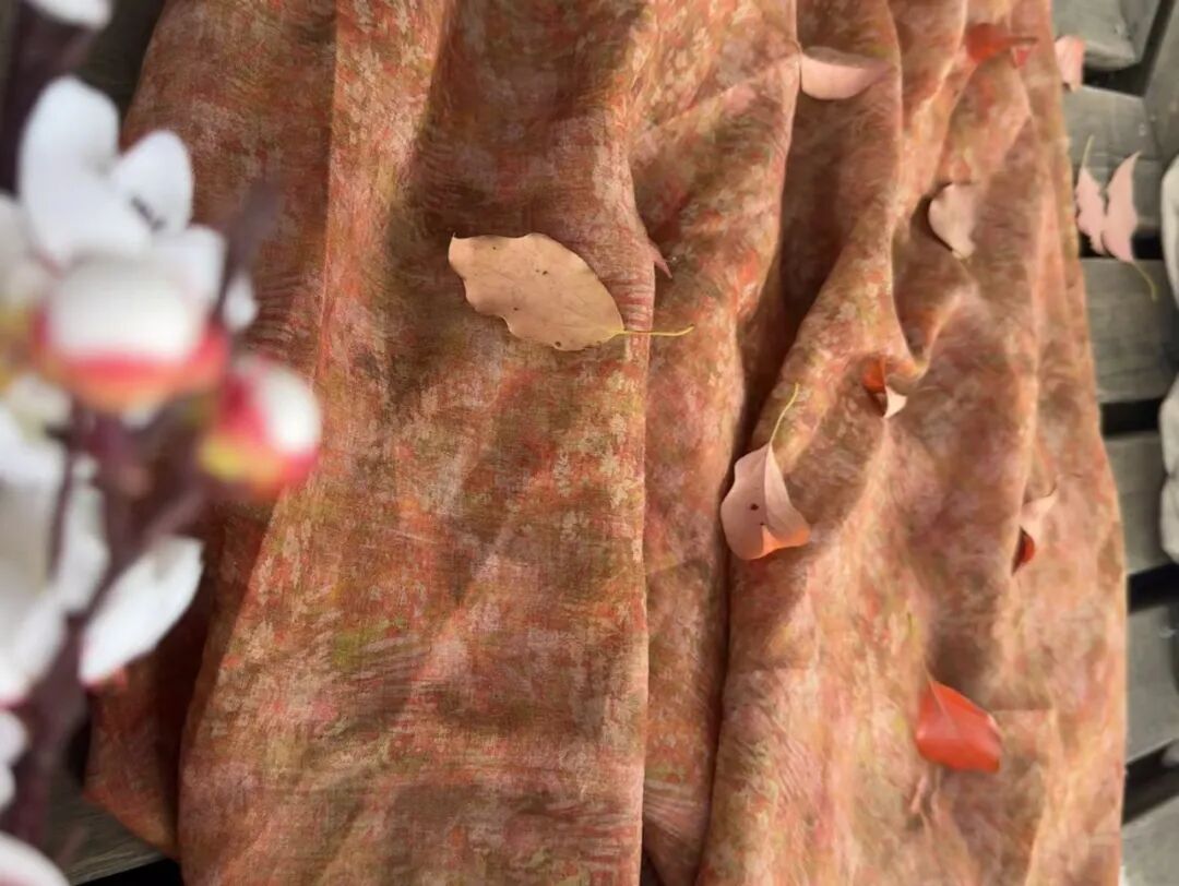 冬季是麻纺面料的传统淡季,但御麻坊凭借其深厚的解决方案储备,成功找到了破冰之道。“为了让冬季转化为企业增长季,我们推出了一款菩提腰果花面料。”李文松介绍道,“菩提腰果花多数用于羽绒服与棉服表布中,调整织法的结构、密度与纹理,达到一定的厚度。在此基础上,叠加一些绣花,进一步提升面料的视觉层次与艺术表现力,使其风格更多元、产品更具精致感与附加值,从而获得冬季市场客户的青睐。”
