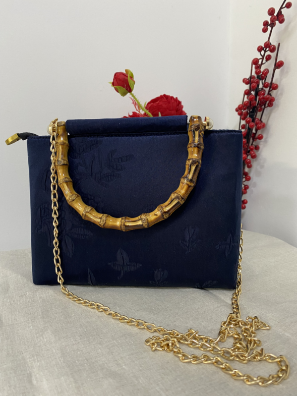 在御麻坊的门市内,一副亚麻提花挂画静静地诉说着品牌的美学追求。画面上,深浅交织的亚麻纱线通过精密的提花工艺,勾勒出充满东方意蕴的缠枝纹样,既有麻料的天然肌理,又展现出不输丝绸的精致质感。除此之外,用御麻坊面料制成的各系列麻料样品包被整齐地码放在桌子上。