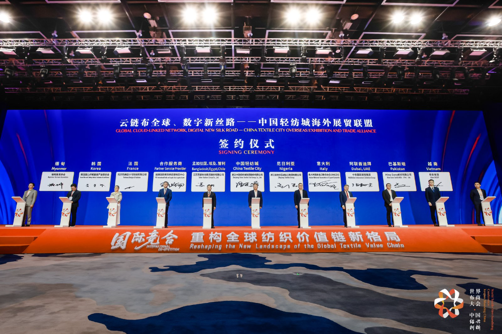 ![]() 大会上,“云链布全球、数字新丝路——中国轻纺城海外展贸联盟启动及签约仪式”隆重举行,标志着柯桥在构建全球数字贸易网络方面迈出重要一步。浙江中国轻纺城集团股份有限公司正依托其海量面料资源,积极推进“布谷AI”项目,致力于打造线上孪生市场,构建“线上找样、线下体验、平台下单”的一站式交易闭环。