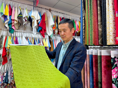 在廖新芳看来,面向全球市场没有“通用方案”,成功的关键在于为不同客户提供不同的产品。他介绍说:“我们日常做的就是深入了解各地客户的具体需求。比如,中东客户集中采购的是深色长袍和头巾布料;东南亚气候湿热,那边客户反复强调的是面料的鲜艳度和透气性;而南美客户下单时,则非常关注泳衣印花的色彩和工艺......” 正是基于对这些具体需求的清晰把握,阳槐纺织能够进行针对性的产品开发和备货,从而更准确地满足订单需求,这构成了他们服务客户的基础。