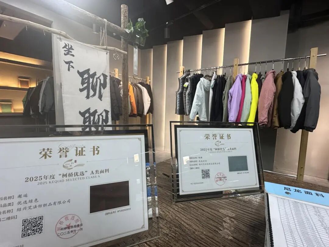 然而,在跨境电商园区的一间办公室里,一股相反的“轻”逻辑正悄然生长。主导者是绍兴艾法纺织品有限公司总经理张玉明,一位年轻的“面料二代”。他津津乐道的,是如何将传统汉服面料赋予防水透湿功能,蜕变为风格独特的冲锋衣;又如何从“乱放”纱线的“废样”中,意外打捞出惊艳纹理。
